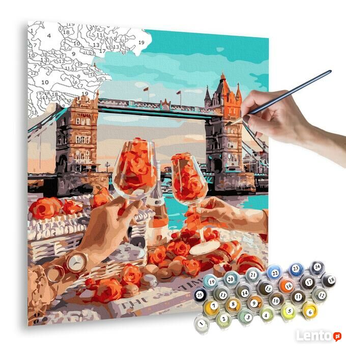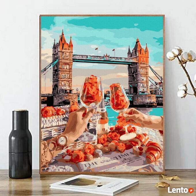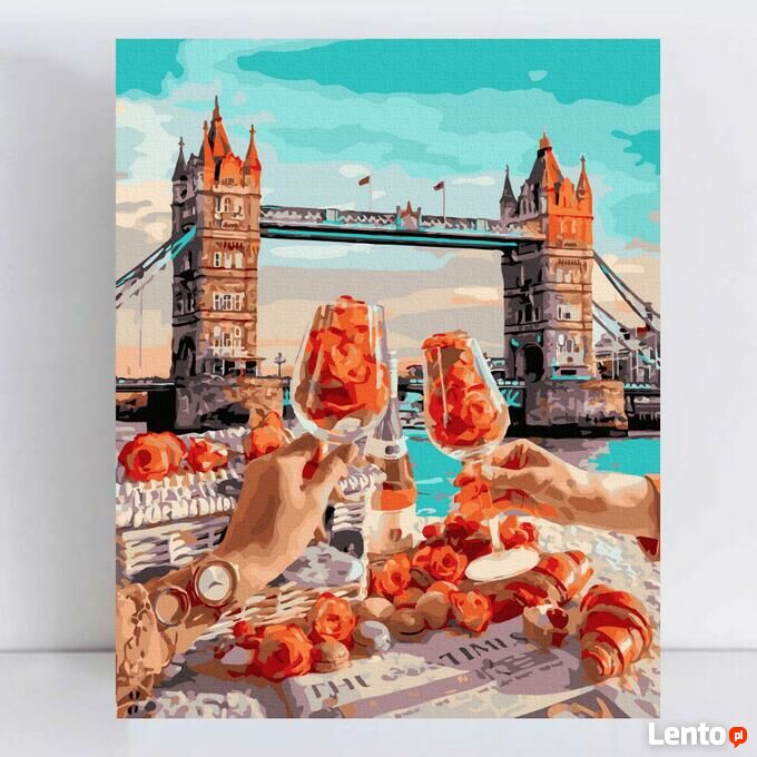 Obraz malowany po numerach 40x50 na blejtramie " Śniadanie w Londynie "Zestaw zawiera:
