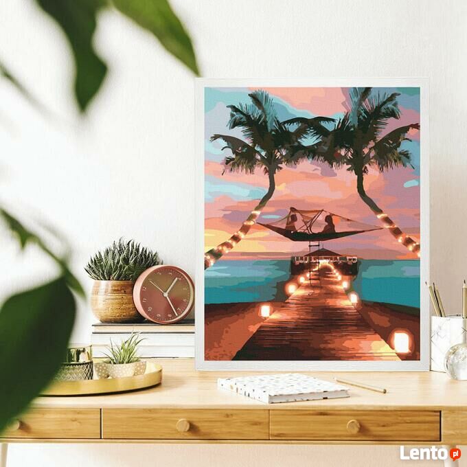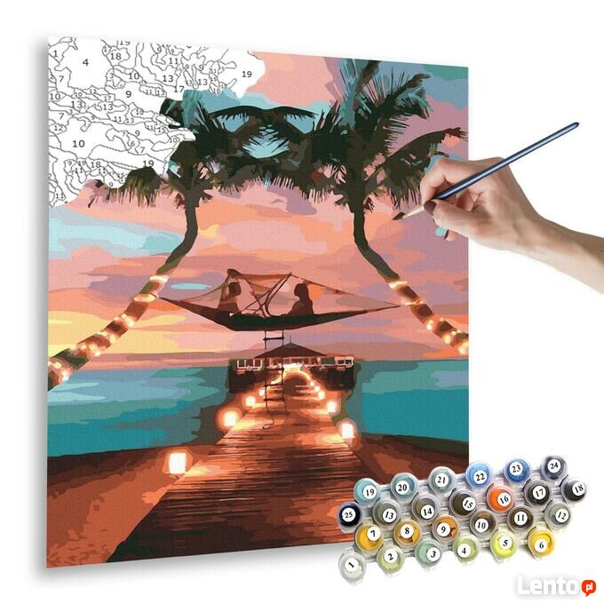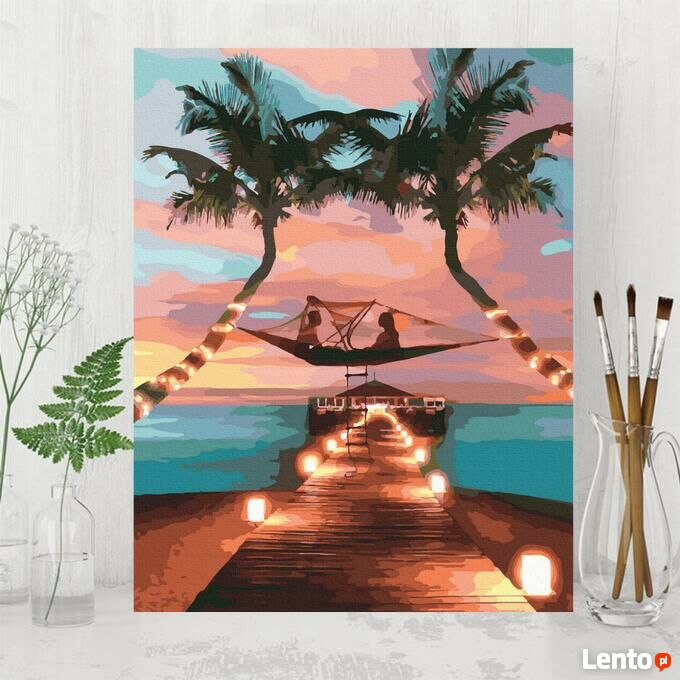 Obraz malowany po numerach 40x50 na blejtramie " Wieczór na wyspie "Zestaw zawiera: