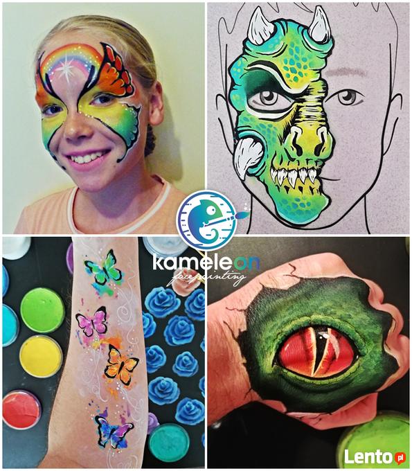 - zestawem kilkunastu hipoalergicznych farb z atestami firmy Snazaroo, DiamondFX, PartyXplosion, Cameleon, Superstar czy Global (matowe i połyskujące),