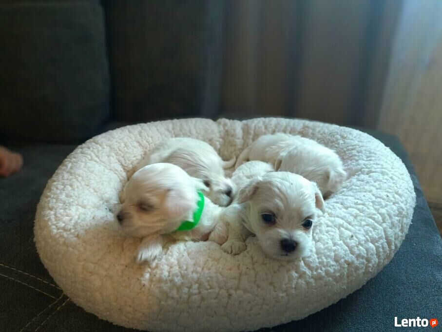 Szczeniak rasy maltańczyk będą gotowy do odbioru pod koniec maja. Będzie posiadał komplet szczepień oraz odrobaczeń adekwatnych do wieku. Dodatkowo rodowód, książeczkę zdrowia, micro chip oraz wyprawkę. Wyprawka zawiera kocyk, legowisko oraz zapas karmy. Piesek jest wychowywany w domu, czysty i zadbane każdego dnia przytulany. Mama psiaków ma na imię Finka jest białą puszystą damą waży 2,7 kg. Tata piesków jest bardzo małym przystojnym kawalerem, dlatego też nasze pieszczochy będą małe. Zapraszam do rezerwacji, a w razie pytań zapraszam do kontaktu.