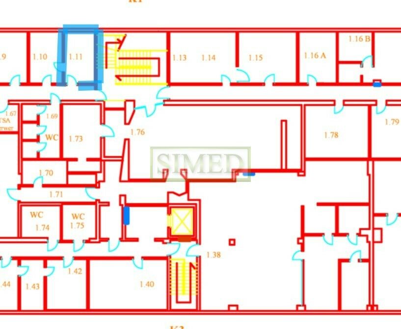 , budynek z windą , komunikacja wózkiem paletowym .