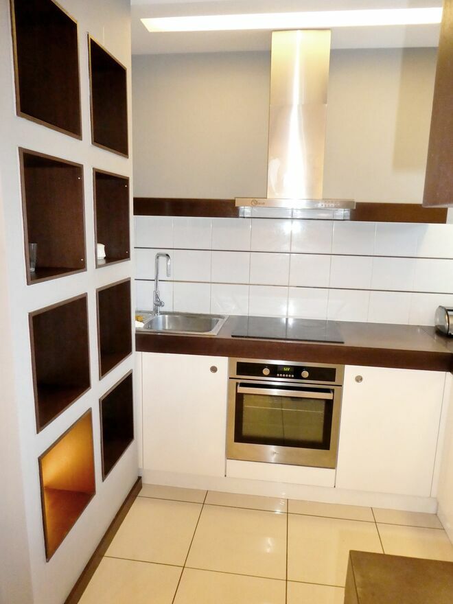 • kuchnia widna w pełnej zabudowie z AGD dobrych marek, m.in.: lodówka z zamrażarką, piekarnik i płyta indukcyjna, możliwość wstawienia nowej zmywarki;
