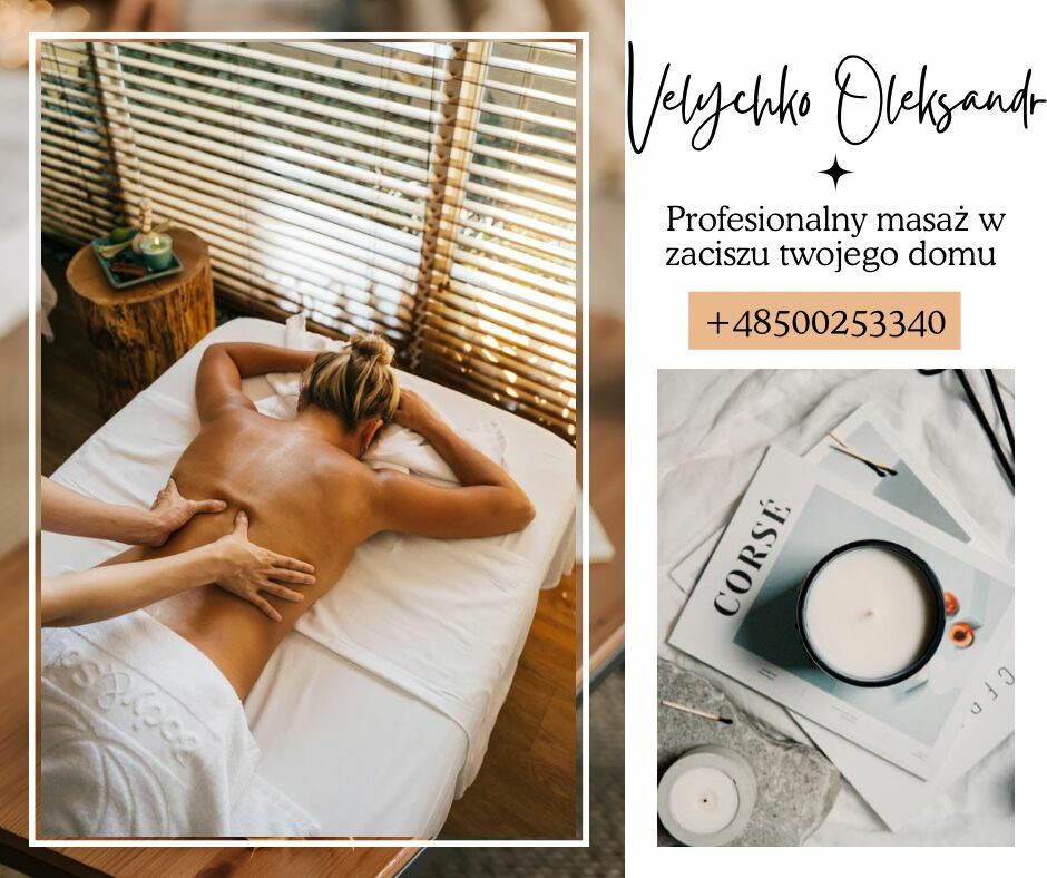 Nazywam się Oleksandr. Jestem dyplomowanym technikiem masażystą oraz certyfikowanym specjalistą w zakresie masaży leczniczych, takich jak: