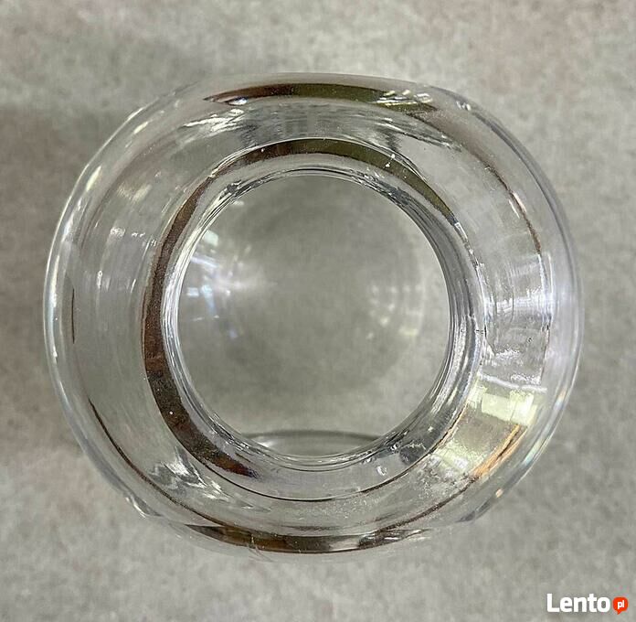 Masywny niski szklany wazonik z pamiątkowym grawerunkiem
