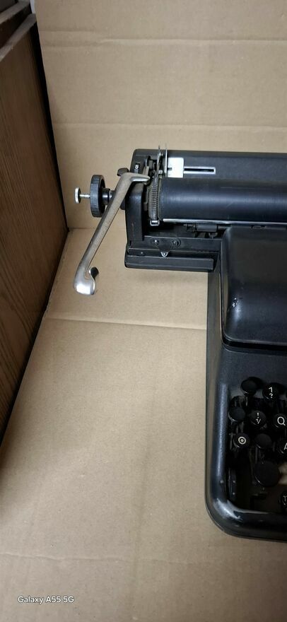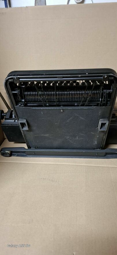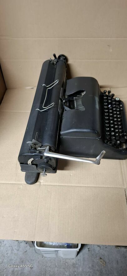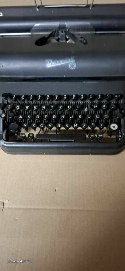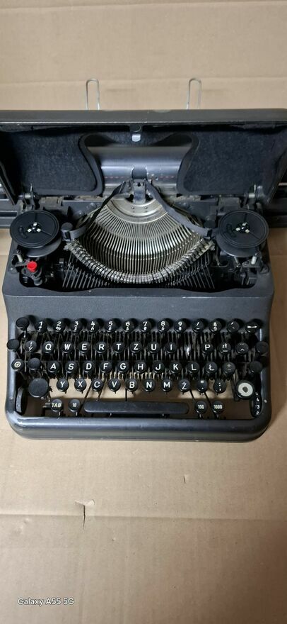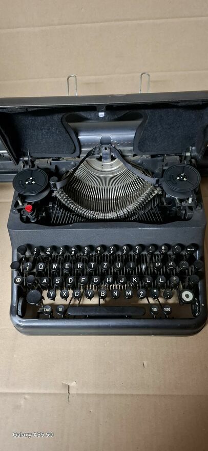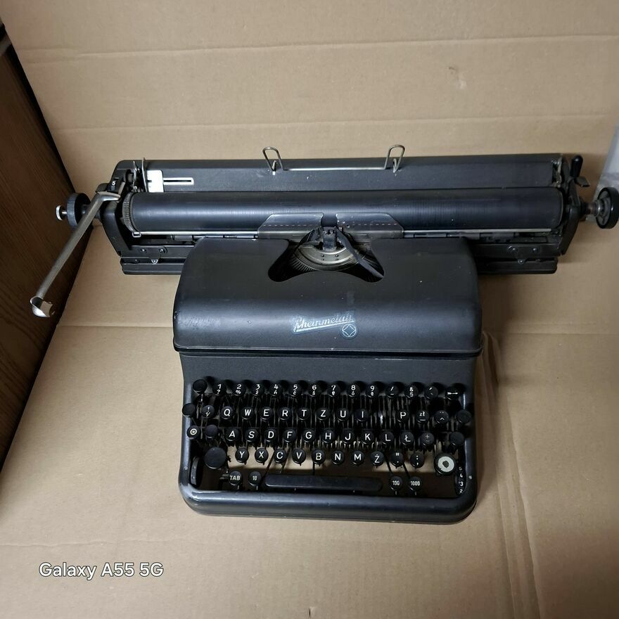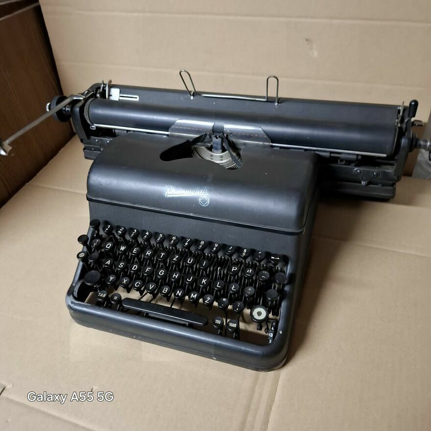 Niemiecka, przenośna maszyna do pisania wyprodukowana w 1953 roku dla Rheinmetall - Borsig AG. Przedmiot nawiązuje do stylu Bauhaus. Maszyna sprawna, o bardzo ładnej klasycznej formire.Przedmiot zachowany w bardzo dobrym stanie prawdziwa gratka dla kolekcjonera. Prezentuje się szczególnie pięknie, okazale na biurku, czy jako element wystroju wnętrza, rekwizyt filmowy czy rekwizyt w poważnej kancelarii prawniczej,Pomimo lat wszystkie funkcje maszyny są nadal ruchome i w pełni sprawne!
