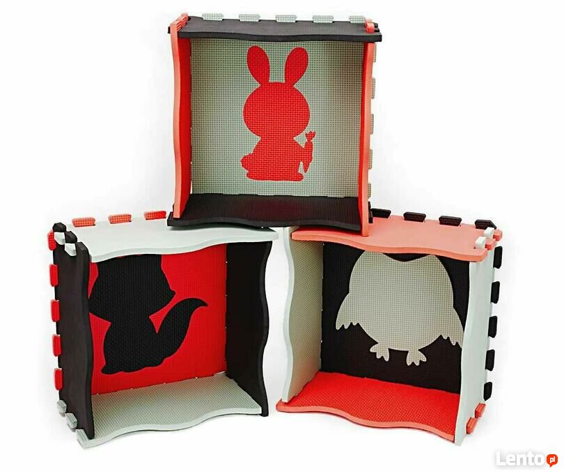 Z puzzli możemy utworzyć świetne pojemniki do przechowywania lekkich zabawek, np. maskotek. Możemy zbudować większe bądź mniejsze pudełka. Dodatkowo, ponieważ puzzle są ze sobą powiązane, możesz dodać ich więcej, jeśli chcesz powiększyć matę do gry.