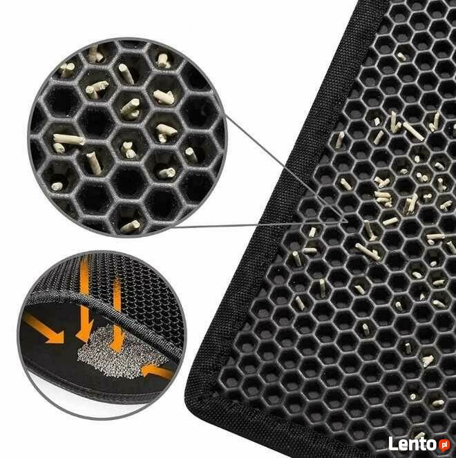 Dwuwarstwowa mata higieniczna skutecznie zatrzymuje żwirek pozostający na łapkach kota opuszczającego kuwetę. Drobiny żwirku oraz inne nieczystości wpadają w otwory przelatując do wewnętrznej warstwy maty. Wystarczy ustawić ją obok kuwety, aby kot nie roznosił brudnego żwirku po całym pomieszczeniu.