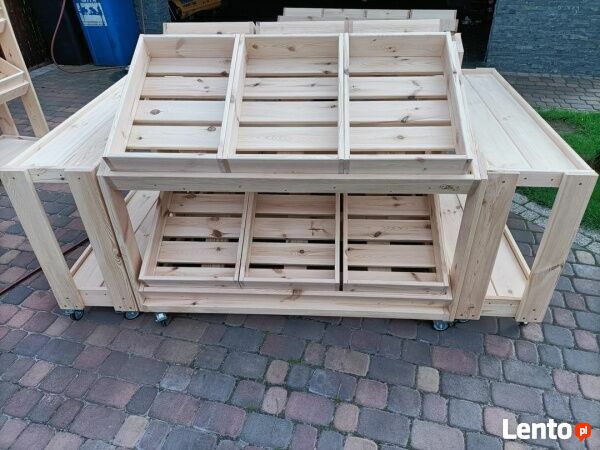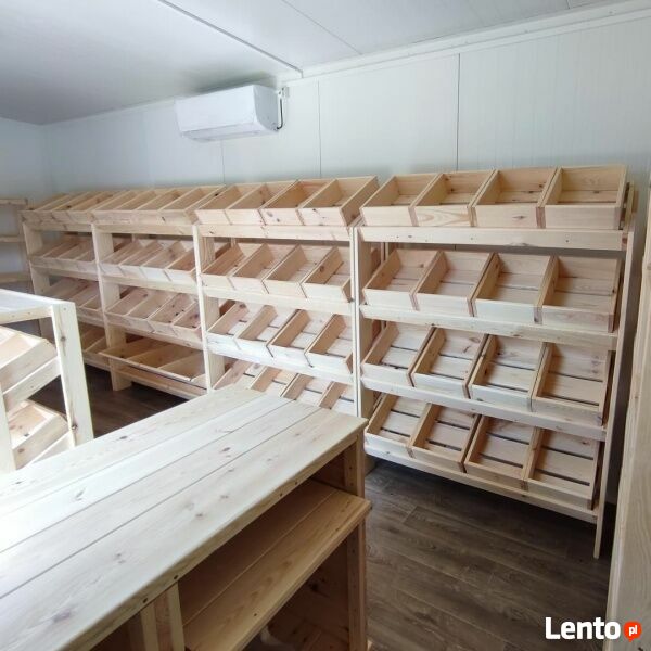 Drewniane regały, lady, wyspy, skrzynki - Meble sklepowe z drewna. Lady, wyspy i regały sklepowe drewniane na warzywa i owoce, regały ekspozycyjne do sklepu, skrzynki sklepowe. Tanie meble sklepowe drewniane. Regał sklepowy drewniany, lada sklepowa drewniana, wyspa sklepowa czy skrzynka sklepowa drewniana.