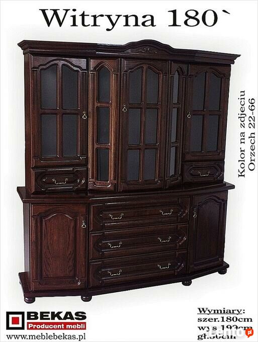Witamy mamy Państwu do zaoferowania stylowe meble, które w naszej firmie cieszą się wieloletnią tradycją. Jeśli jesteście Państwo amatorami wystroju, który wypełni wnętrze waszego domu niepowtarzalną nutą szyku i elegancji nie powinno zabraknąć w nim prezentowanych poniżej mebli.Przedstawione przez nas modele są wykonane z wysokiej jakości naturalnej dębowej okleiny z dodatkami litego drewna.To właśnie dzięki temu m.in. komody, szafy czy witryny zawierają w sobie elementy okazałości i bogactwa.Stylowość w tych meblach rodzi się przede wszystkim z gustownie dobranych detali. Wnętrze domu powinno wyrażać się głównie ekspresją tych ,którzy tworzą jego klimat. Renomę, jakość,trwałość możemy potraktować jako sprawdzone elementy charakterystyki prezentowanych przez firmę mebli, a prócz tego przyczynią się one do tego, że wnętrze państwa domów,salonów,hoteli czy restauracji stanie się wiarygodną i niepowtarzalną oazą spokoju. Jeśli natomiast chodzi o ceny naszych wyrobów stanowią one konkurencje dla innych producentów na polskim rynku meblowymPodana Cena za Witryne 180`