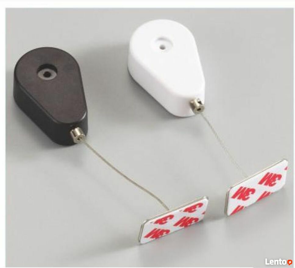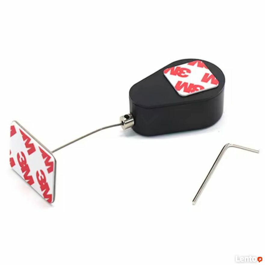 Zwijacz zabezpieczający przed kradzieżą w kolorze CZARNYM z blaszką z taśmą samoprzylepną.ZWIJACZ antykradzieżowy to małe zabezpieczenie w postaci stalowej linki odciąganej mechanicznie.