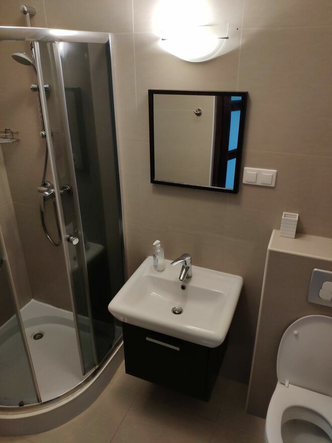 - łazienka z przysznicem i wc - 3m2