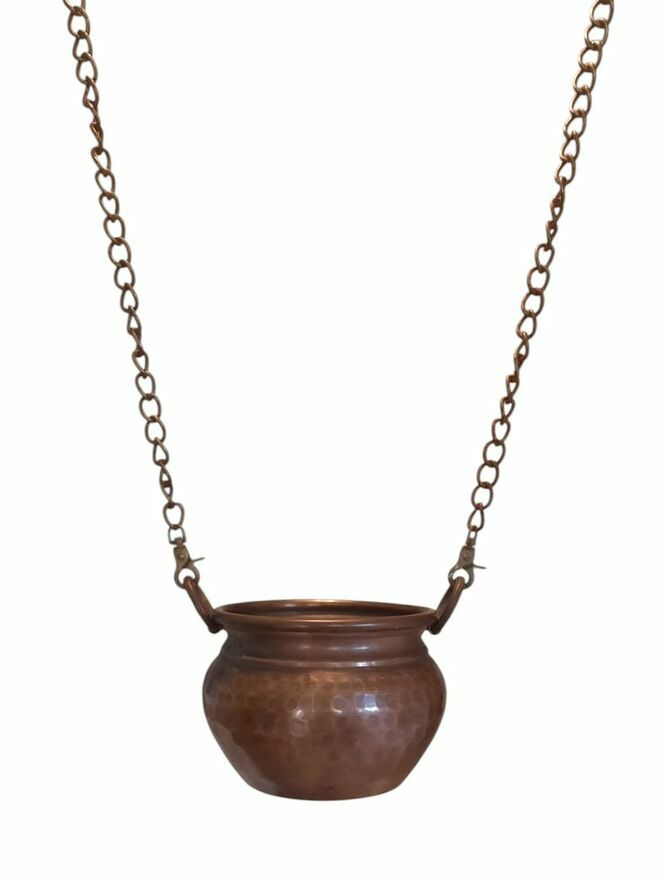 Miedziany garnuszek z uchwytami do powieszeniawysokość 11 cm