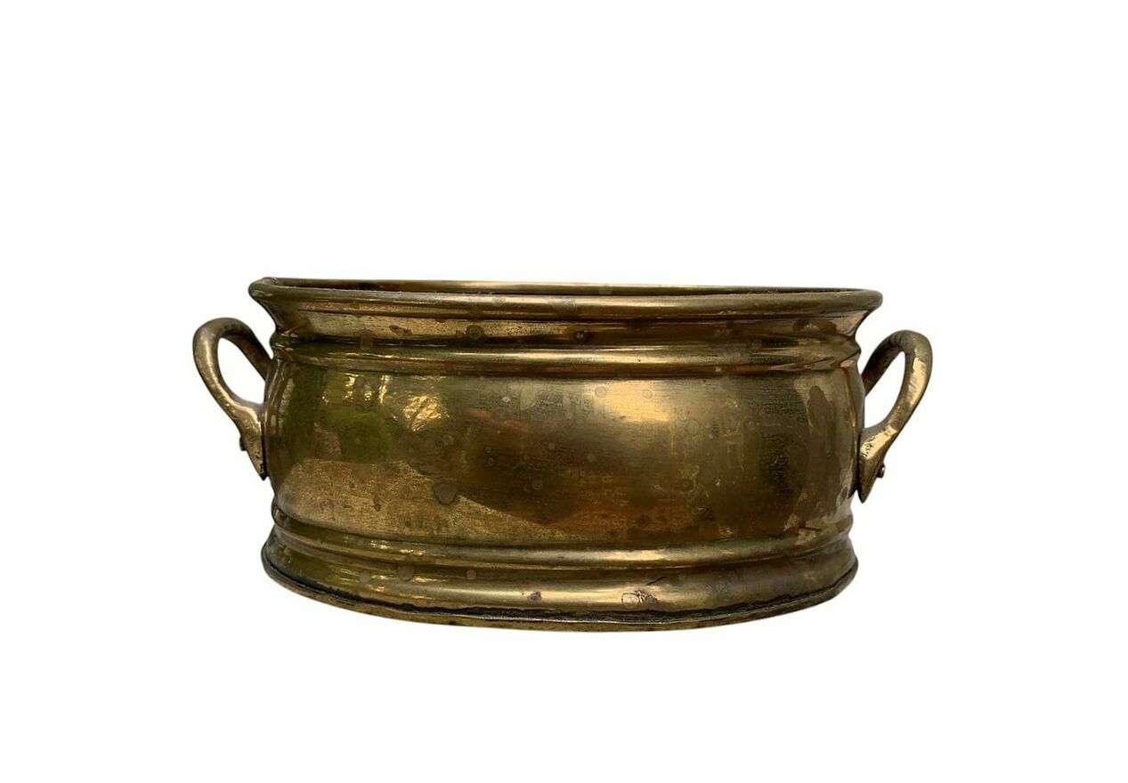 Miedziany garnuszek w owalnym kształciejako dekoracja, osłona doniczki, etc.