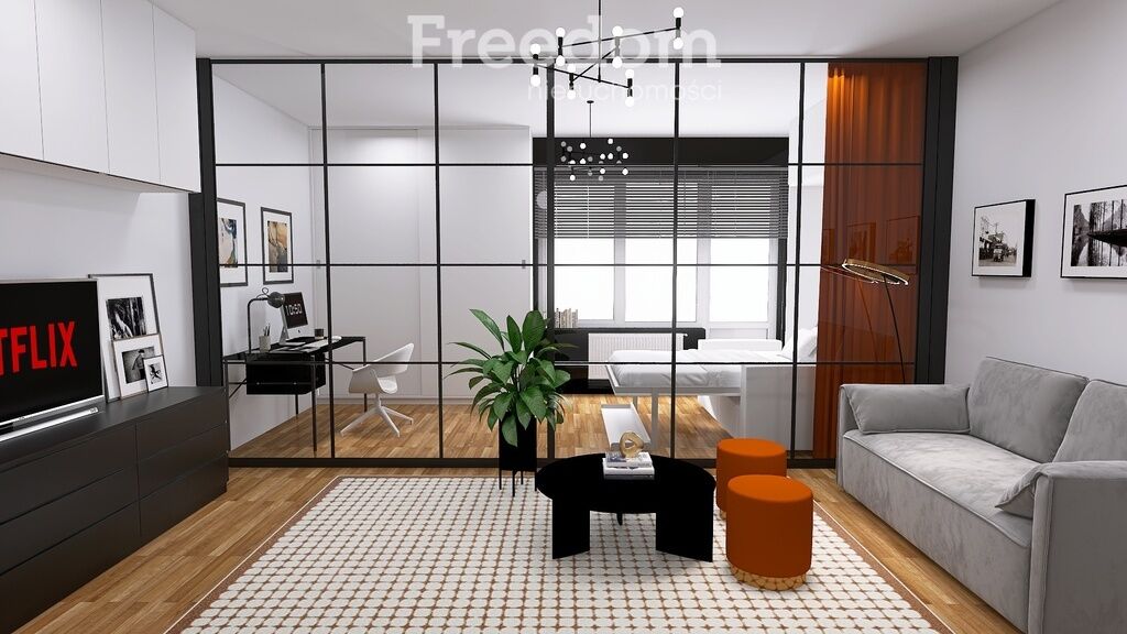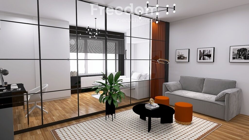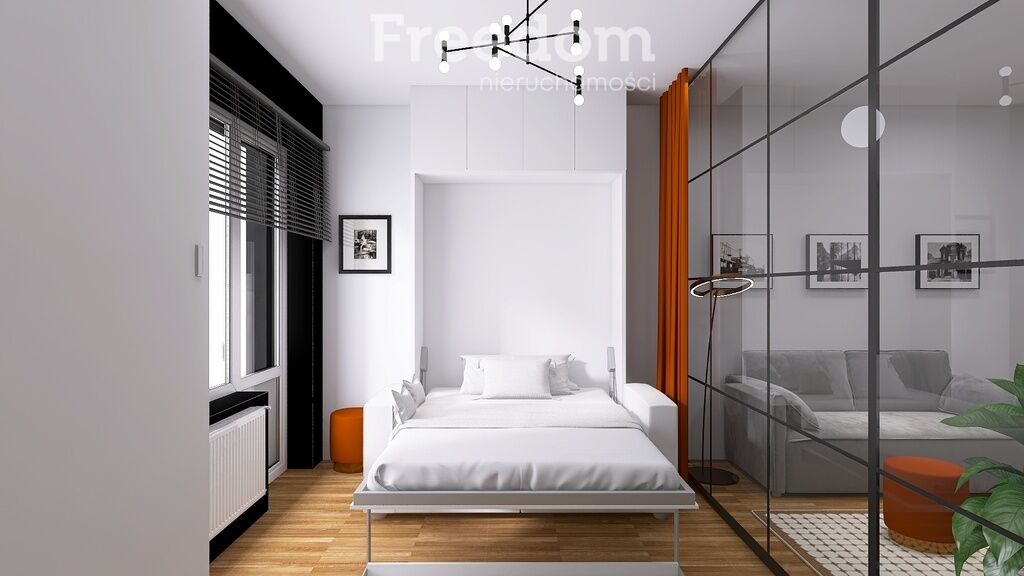 przygotowaną przez architekta wnętrz, z wydzieloną sypialnią,