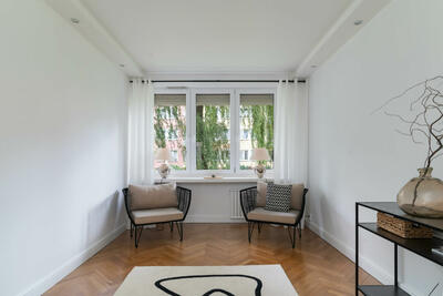 Do wynajęcia 2-pokojowe, klimatyczne mieszkanie 42 m² z ogródkiem na parterze przy ul. Marywilskiej (Białołęka). Styl ...