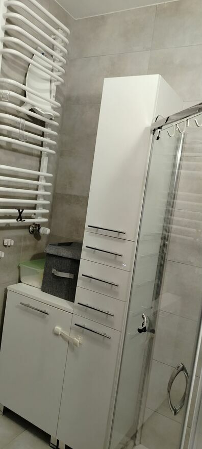 Drugi pokój (Sypialnia/ Pokój Dziecka): Przestronna duża szafa pod zabudowę. Dodatkowym atutem są szafki na sąsiedniej ścianie które mogą pomieścić bardzo dużo.