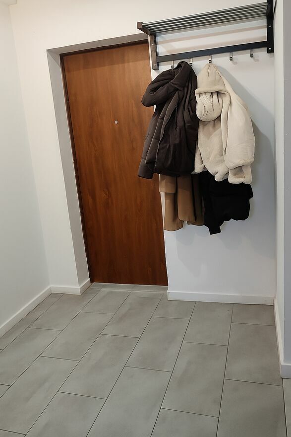 W przedpokoju duża wnęka na szafę 3 m (np. IKEA Pax)