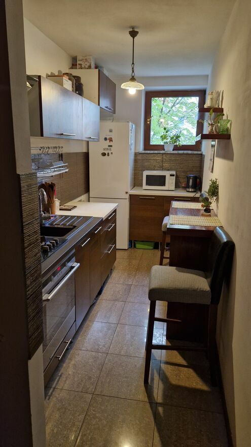 Budynek otaczają drzewa i zieleń, blisko metra, dla właścicieli bezpłatne parkowanie w osiedlu.