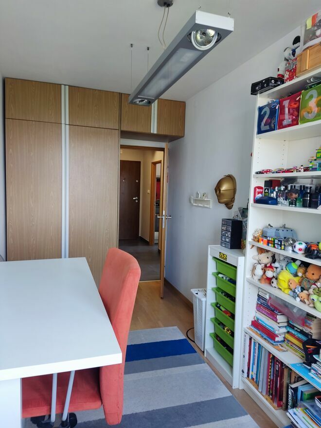 Mieszkanie narożne, tylko jedna ściana styka się z sąsiadem (ta z mapą świata)