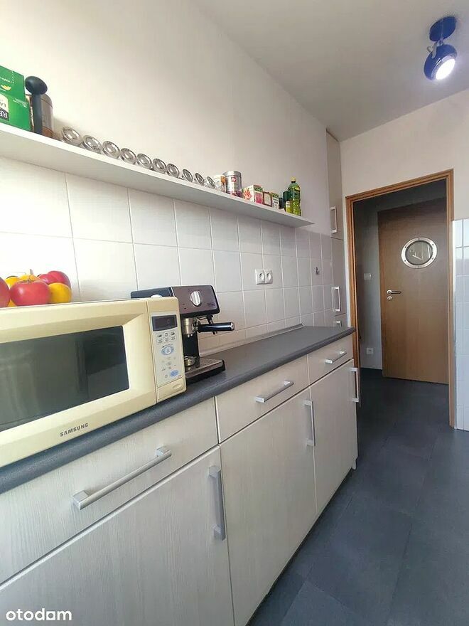 Kompletnie umeblowane: szafy, sprzęt AGD (lodówka, pralka, piekarnik, płyta gazowa, pochłaniacz), łazienka.