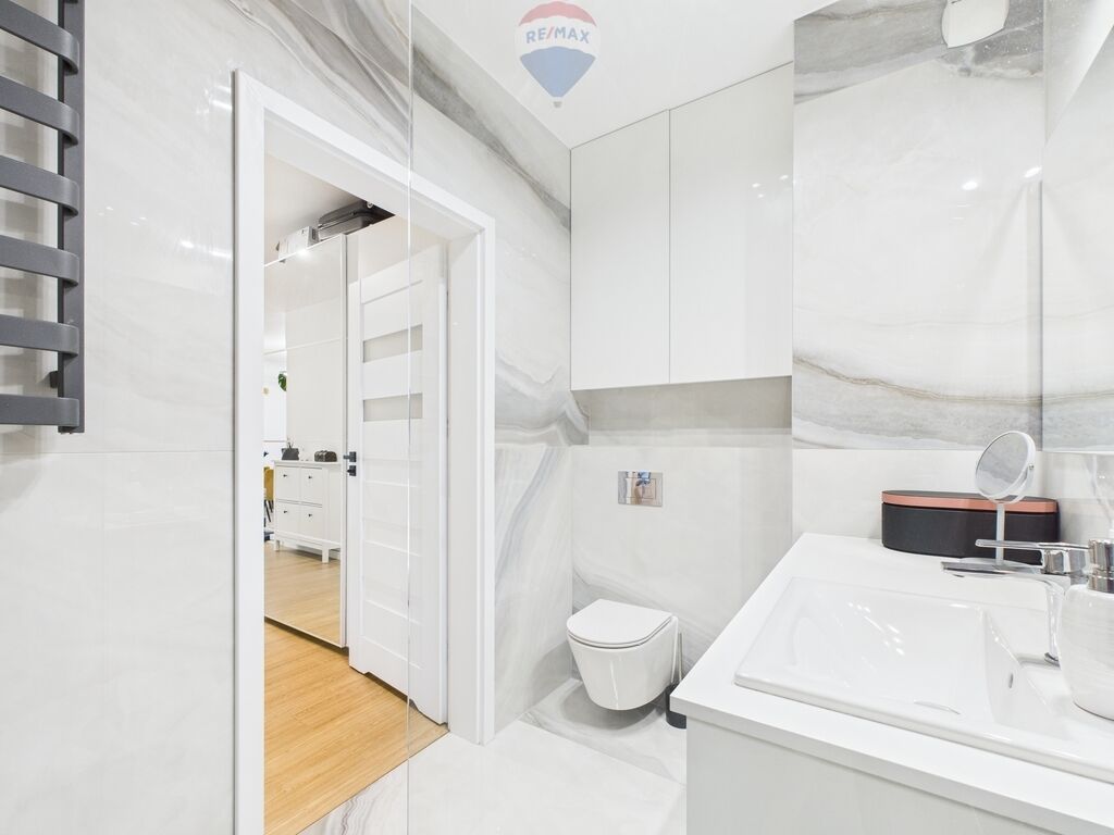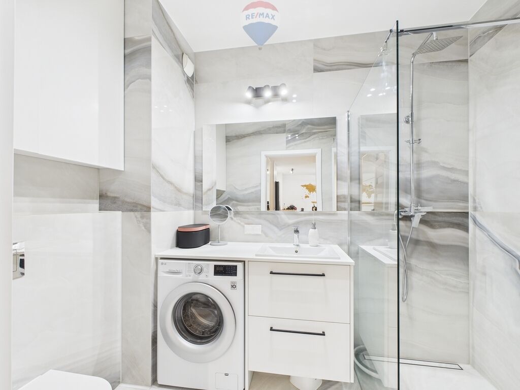 Łazienka 4,5m2 - prysznic, umywalka, szafka, pralka, wc, grzejnik