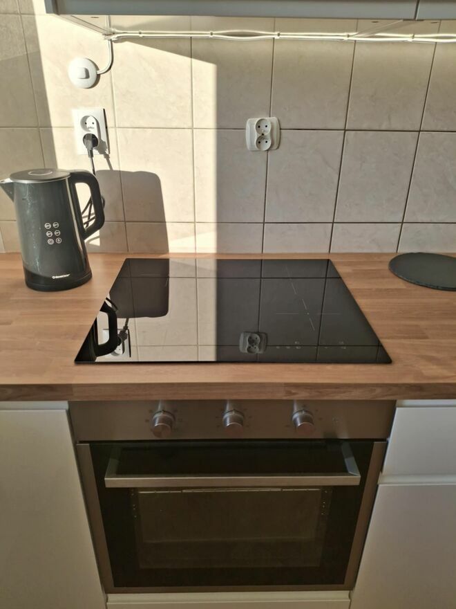 Całe mieszkanie jest odświeżone (pomalowane ściany, sufity). Kuchnia posiada nową zabudowę, lodówkę, kuchenkę, piekarnik, stół oraz krzesła. W łazience znajduje się nowa umywalka z szafką i nowa pralka. W salonie jest zabudowa z szafą, telewizor i nowa kanapa. W sypialni jest stelaż pojedynczego łóżka.