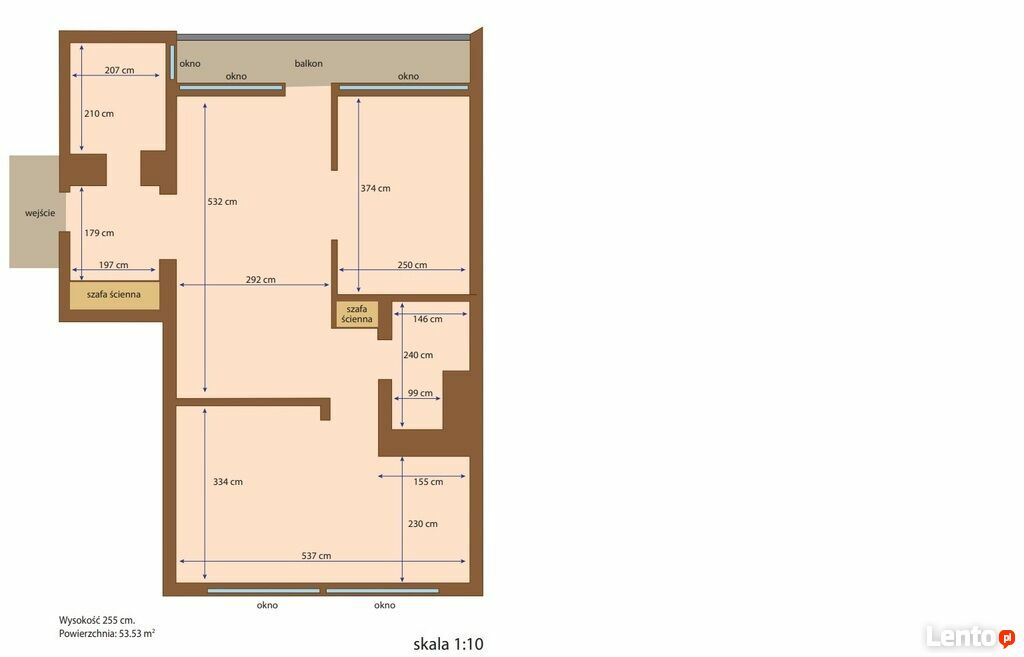 - mieszkanie składa się z korytarza o pow. 3.5 m2, kuchni o pow. 4