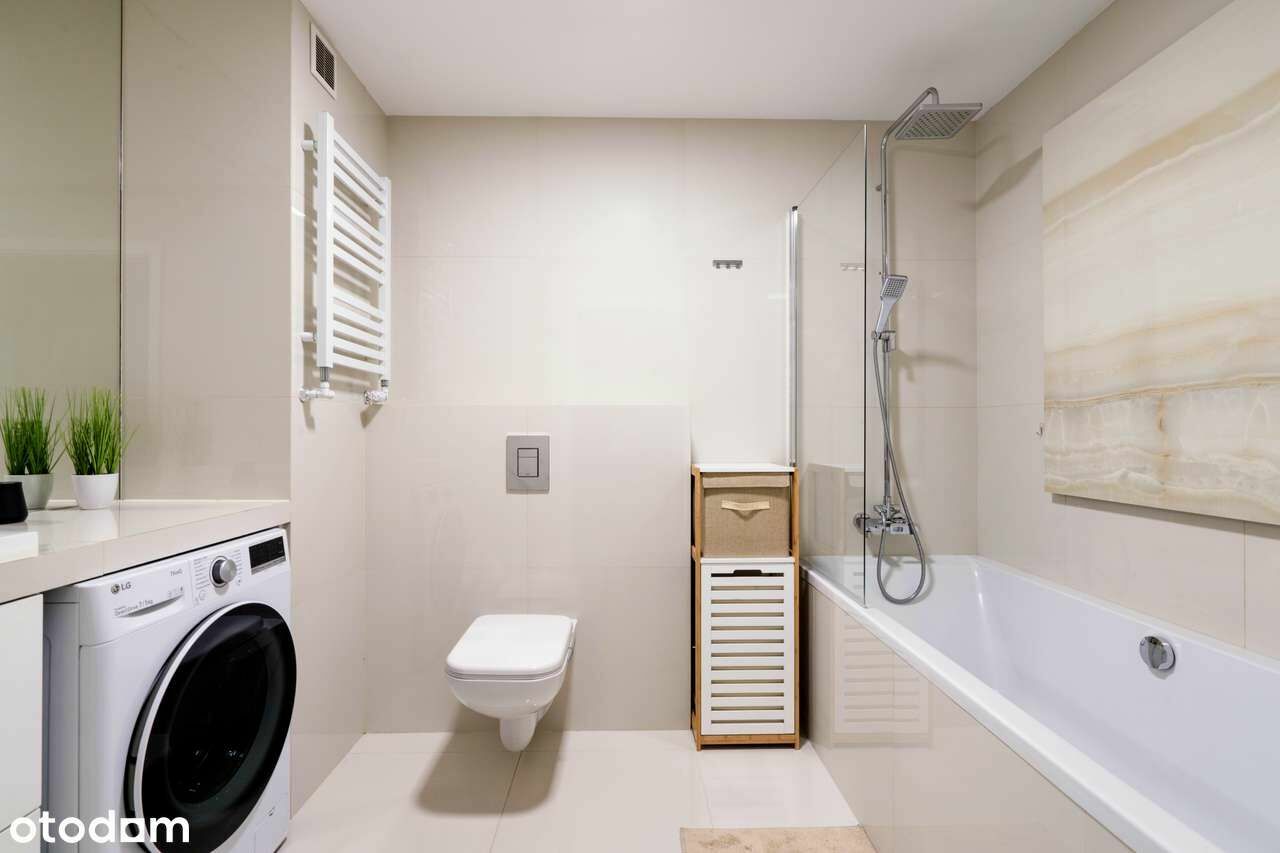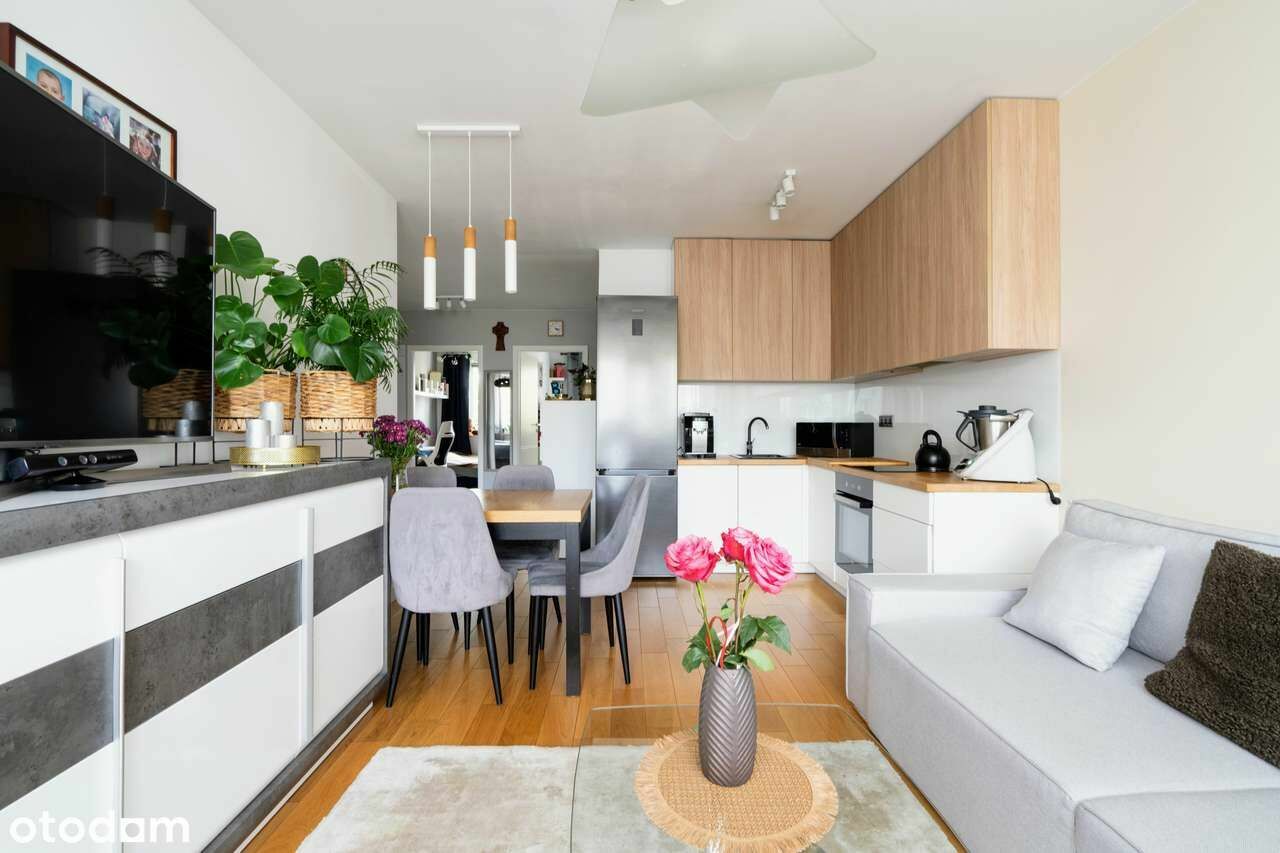 Mieszkanie jest gotowe do wprowadzenia – zadbane, wykończone. Kuchnia jest w pełni wyposażona w sprzęt AGD, który zostaje w mieszkaniu. Do mieszkania przynależy też piwnica – bardzo przydatna na rowery, zapasy, itd. W mieszkaniu również klimatyzacja.