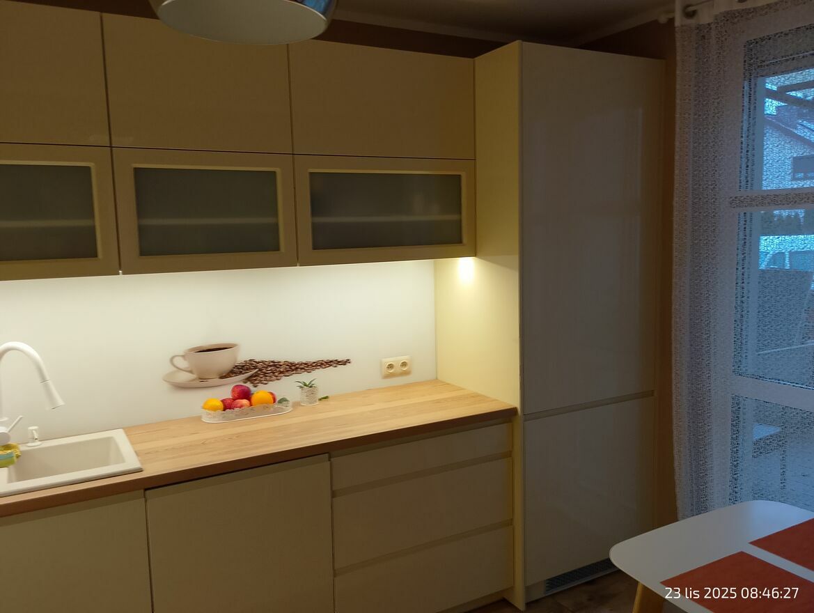 Witam, mam do sprzedania mieszkanie o pow. 101 m2 (w domu jednorodzinnym dwulokalowym) z wyposażeniem kuchennym (meble na zamówienie) oraz z dwiema dużymi, głębokimi szafami w pokojach. Całkowity remont mieszkania wykonany był w 2019 r. W skład mieszkania wchodzą 3 duże pokoje (salon, pokój dziecięcy oraz sypialnia), duża osobna kuchnia z obszernym dwuskrzydłowym oknem balkonowym oraz łazienka (wanna, dwie duże umywalki + wc). W dolnej części mieszkania, do której schodzi się po dodatkowych schodkach (jest też możliwość wejścia do dolnej części mieszkania z przodu domu), znajduje się dodatkowa łazienka, garderoba oraz część piwniczna. Ogrzewanie podłogowe i woda z własnego pieca gazowego. Mieszkanie jest w pełni niezależne. Osobna KW. Z tyłu domu znajduje się działka trawiasta o pow. 80m2 na którą wychodzi się przez kuchnię po pięknym zadaszonym tarasie, na którym w okresie ciepłym można spokojnie przebywać i delektować się ciszą. Działka posiada liczne kwiaty i owoce. Z przodu domu (od której jest możliwość wejścia do części piwnicznej oraz znajduje się duża wiata wybudowana w 2024 r. w której spokojnie zmieści się kilka rowerów oraz segregowane odpady. Sprzedaż bezpośrednia. Mieszkanie jest w kredycie, który spłacę przed sprzedażą, więc zabezpieczenie z hipoteki zostanie zdjęte. Osoby zainteresowane poproszę o podanie nr telefonu. Oddzwonię. pozdrawiam Piotr.Sprawdź zainteresowanie tym ogłoszeniem