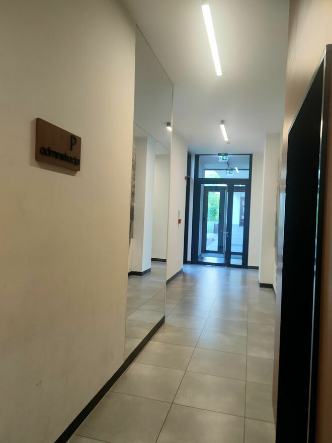 Na parterze budynku znajduje się sklep \\\"Żabka\\\" oraz bistro; po drugiej stronie ulicy umiejscowiła się kameralna kawiarnia.