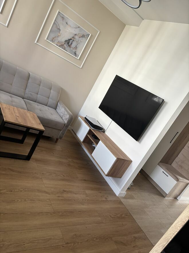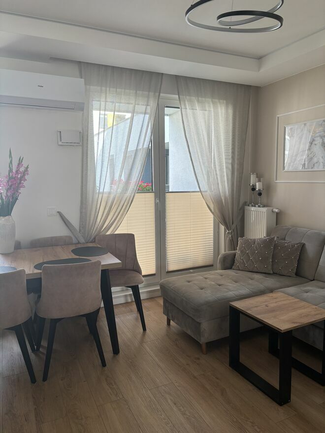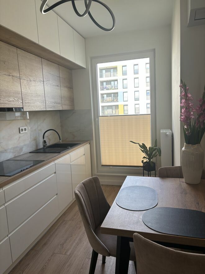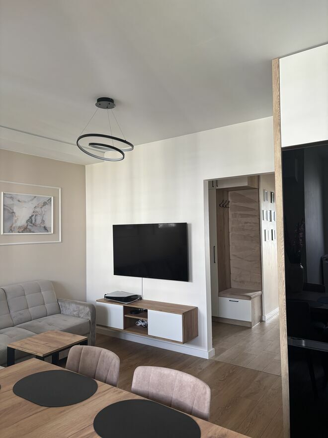 Mieszkanie dwupokojowe w wysokim standardzie, znajdujące się na strzeżonym osiedlu przy ulicy Warszawski Świt.Metraż mieszkania to 46,5m2. Mieszkanie wykończone w wysokim standardzie, dobrze oświetlone, ustawne, w skład którego wchodzi: