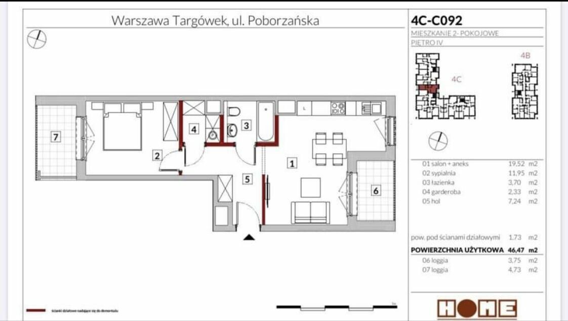 - 2 loggie 4,73m2 (w sypialni) i 3,75m2 (w salonie)