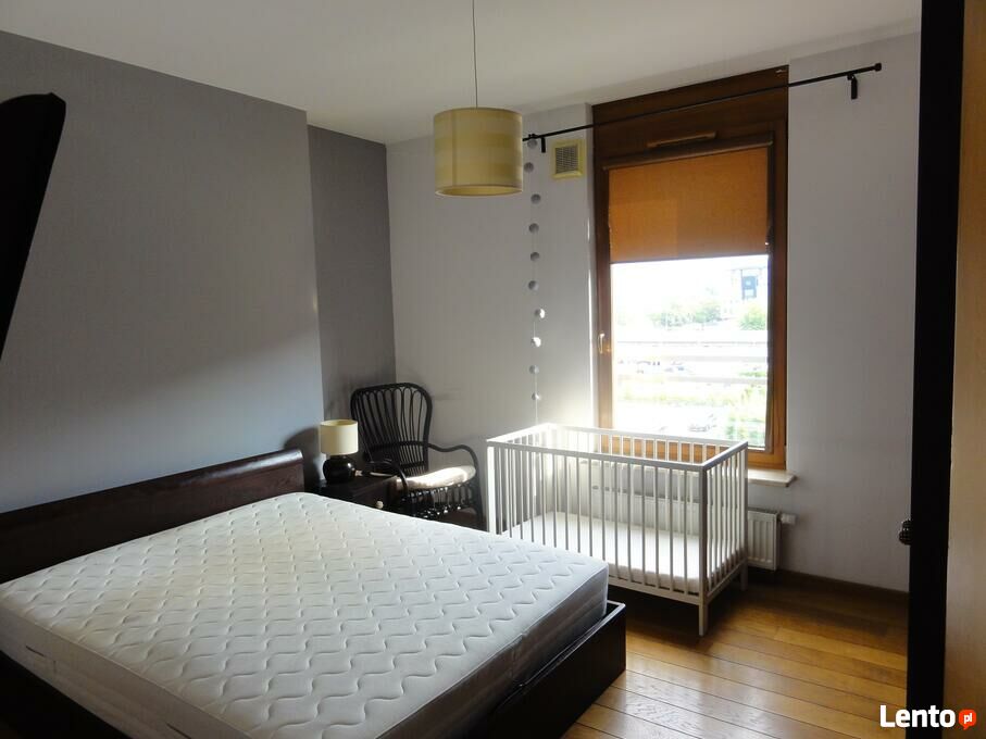 budynku z windą, zawiera dwie sypialnie, 2 łazienki, kuchnię połączoną z salonem, ośmiometrowy taras i praktyczne pomieszczenie gospodarcze. Do mieszkania przynależy miejsce parkingowe.