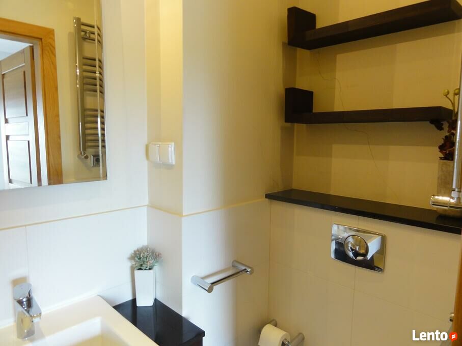 Mieszkanie jest stylowo wykończone naturalnym drewnem dębowym połączonym gustownie z czarnym granitem i dodatkami malowanego szkła: podłoga i drzwi dębowe, meble w różnych odcieniach dębu, czarno białe łazienki z ogrzewaniem podłogowym i dodatkami chromowanej armatury. Każde pomieszczenie zostało starannie zaprojektowane w trosce o wygodę i komfort domowników .