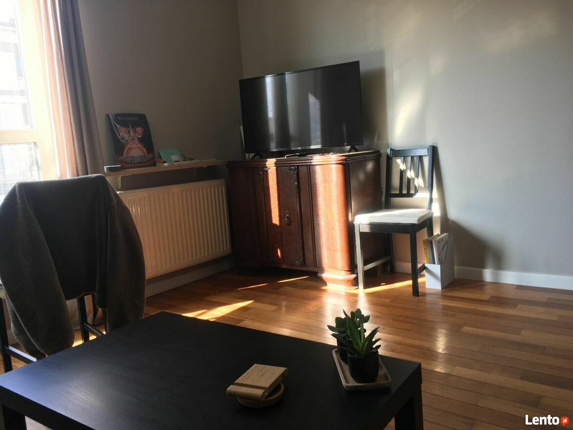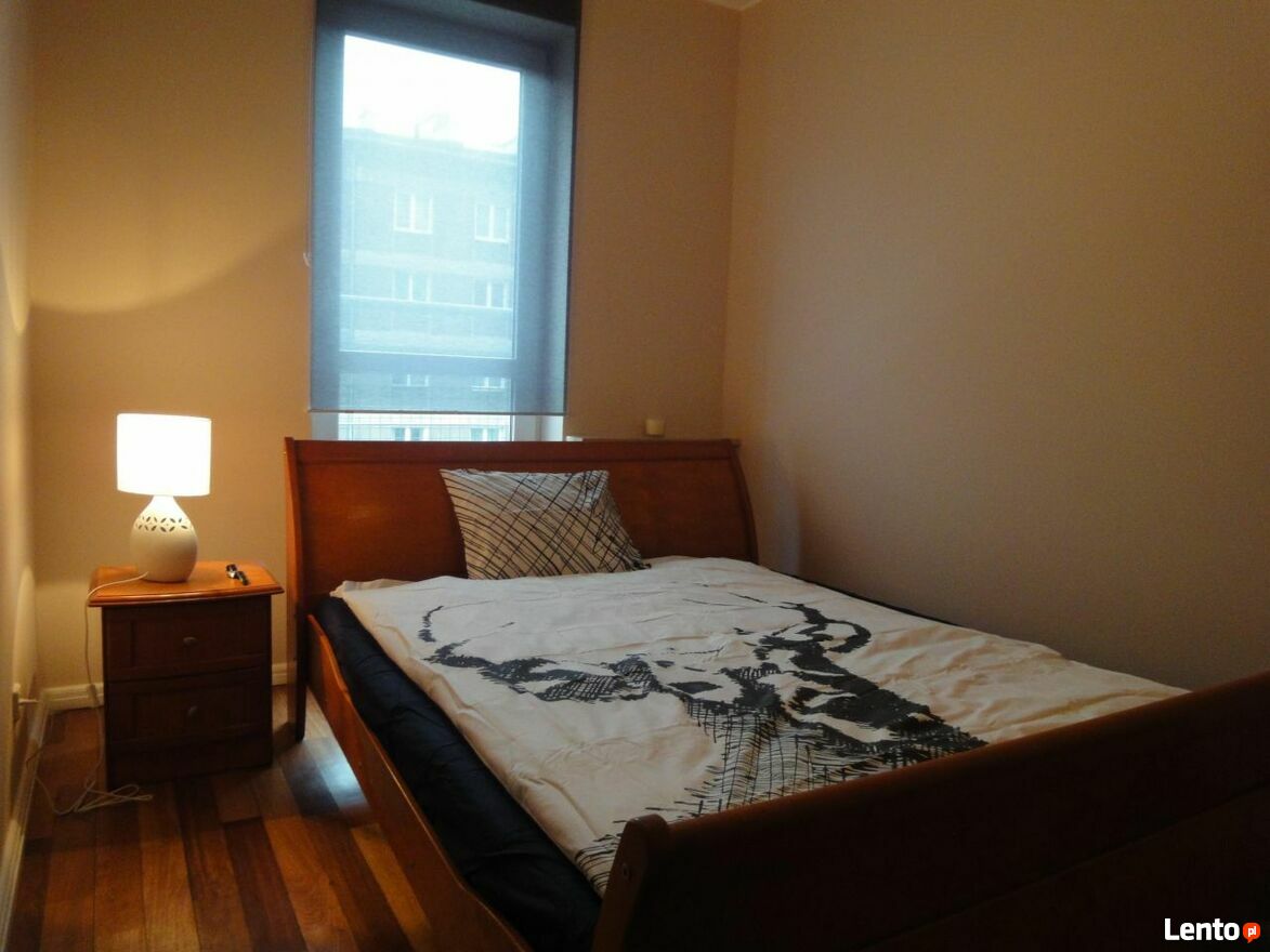 Mieszkanie Warszawa Śródmieście Muranów ul.Nalewki 8 , budynek 2000 r.pierwsze piętro w siedmiopiętrowym apartamentowcu, 2 pokoje połączone aneksem kuchennym w pełni wyposażonym w nowe szafki nowe AGD ,lodówko zamrażarkę, zmywarkę, płytę indukcyjną ,piekarnik ,pralkę.W pokoju wypoczynek i telewizor na podłodze drewno afrykańskie.Sypialnia duże łóżko, garderoba.