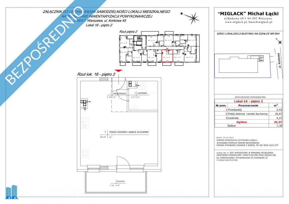Mieszkanie nr 16: 1 pokojowe 33,37 m2, 2 piętro
