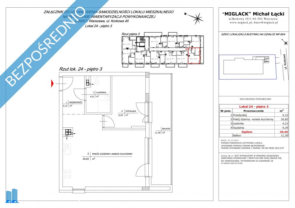 Mieszkanie nr 24: 2 pokojowe 44,44 m2, 3 piętro (miejsce postojowe w garażu podziemnym)