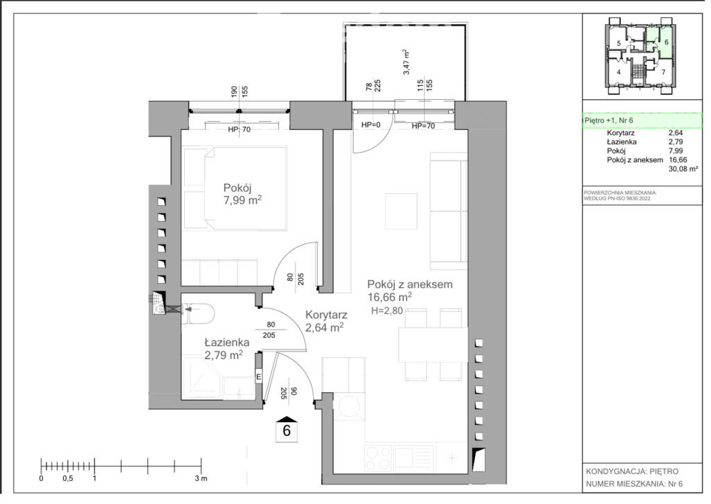m² Łazienka – 2,79 m² Przedpokój – 2,64 m² Balkon – 3,5 m²
