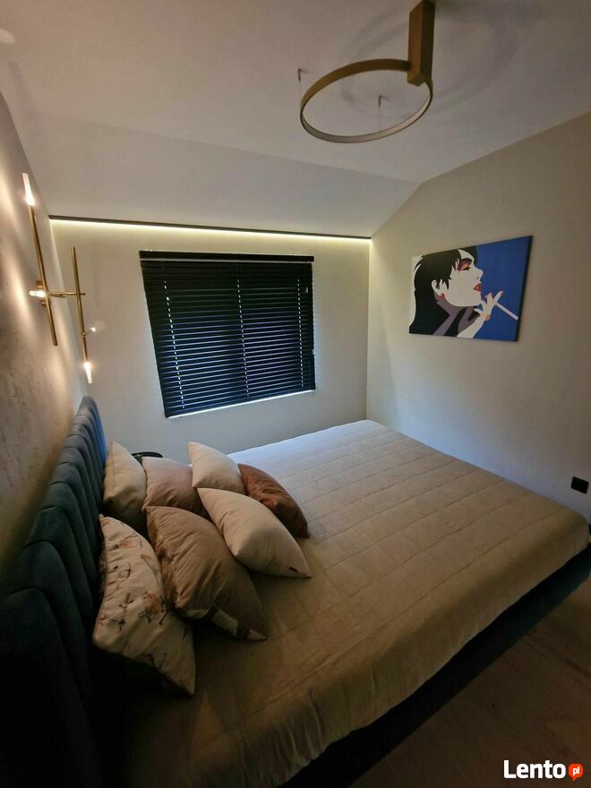 Mieszkanie składa się z 3 pokoi, łazienki oraz salonu z kuchnią (62 m²). Mieszkanie zostało zaprojektowane przez projektanta wnętrz, jest nowe, z wykończeniem w standardzie premium, z klimatyzacją. Użyte materiały podkreślają jego unikalny styl i elegancję. Wygodna kuchnia oraz wszystkie szafy zostały wykonane na zamówienie. Wyposażenie kuchni obejmuje wbudowany sprzęt AGD, dużą lodówkę No Frost, piekarnik, płytę indukcyjną oraz zmywarkę z szufladą na sztućce.Dodatkowo płatne są opłaty za media — woda, prąd, gaz wg zużycia, a także opłata za wywóz śmieci (250 zł)