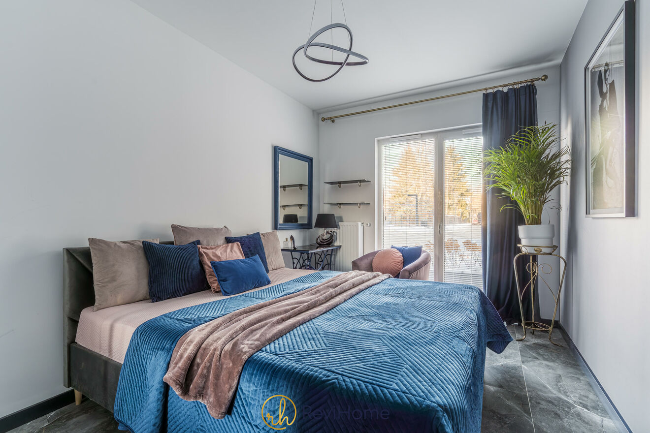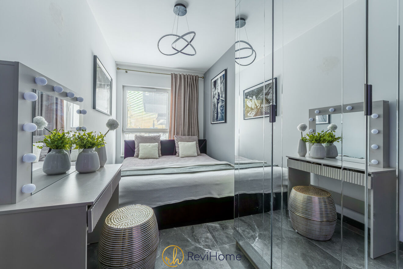W obu sypialniach znajdują się obecnie podwójne, duże łóżka, szafy wnękowe z lustrami oraz toaletki na kosmetyki. Jeden z pokoi można swobodnie przekształcić w pokój dziecięcy czy też biuro do pracy.
