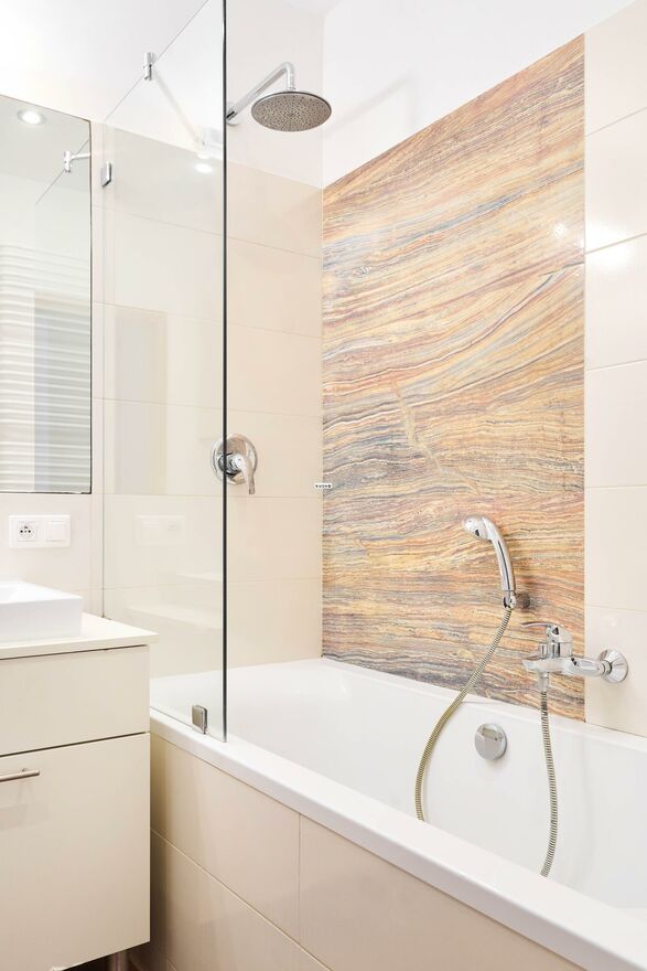 Apartamentowiec wyróżnia się wysoką jakością materiałów wykończeniowych kamień, cegła, marmury i granity w częściach wspólnych.