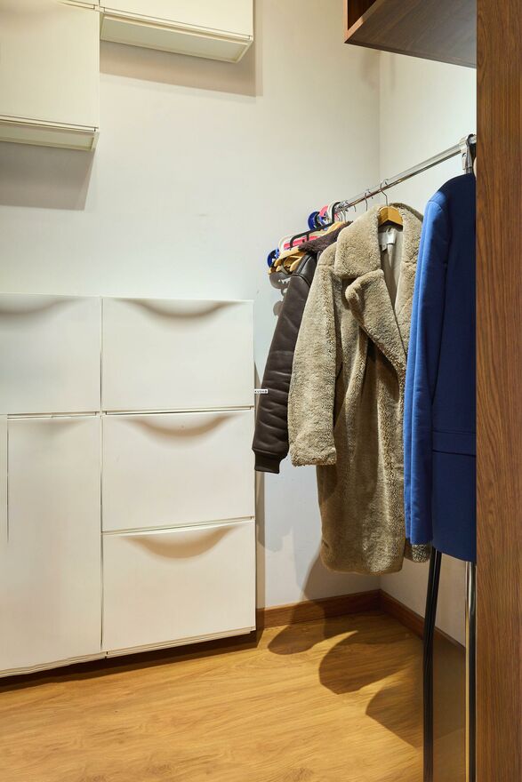 przedpokój z bardzo pojemną garderobą w zabudowie.