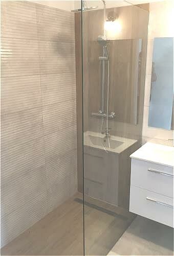 -łazienka: 4,06 m2 z kabina prysznicową. Terakota na podłodze.