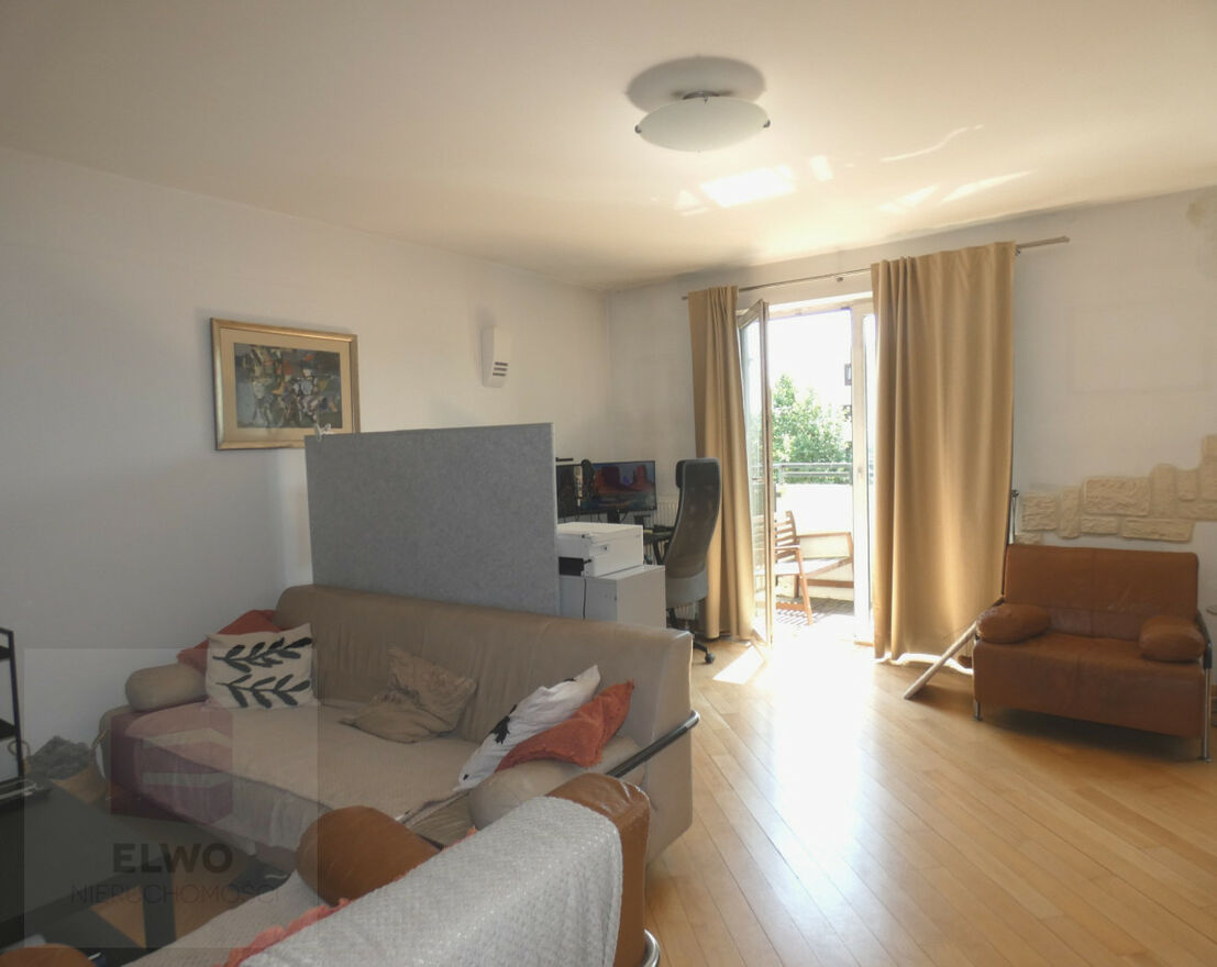 Na 3 piętrze salon z wyjściem na balkon, pokój, kuchnia widna, wc z prysznicem. Okna nie wychodzą na ul. Powstańców Śląskich i nie słychać hałasu z ulicy.