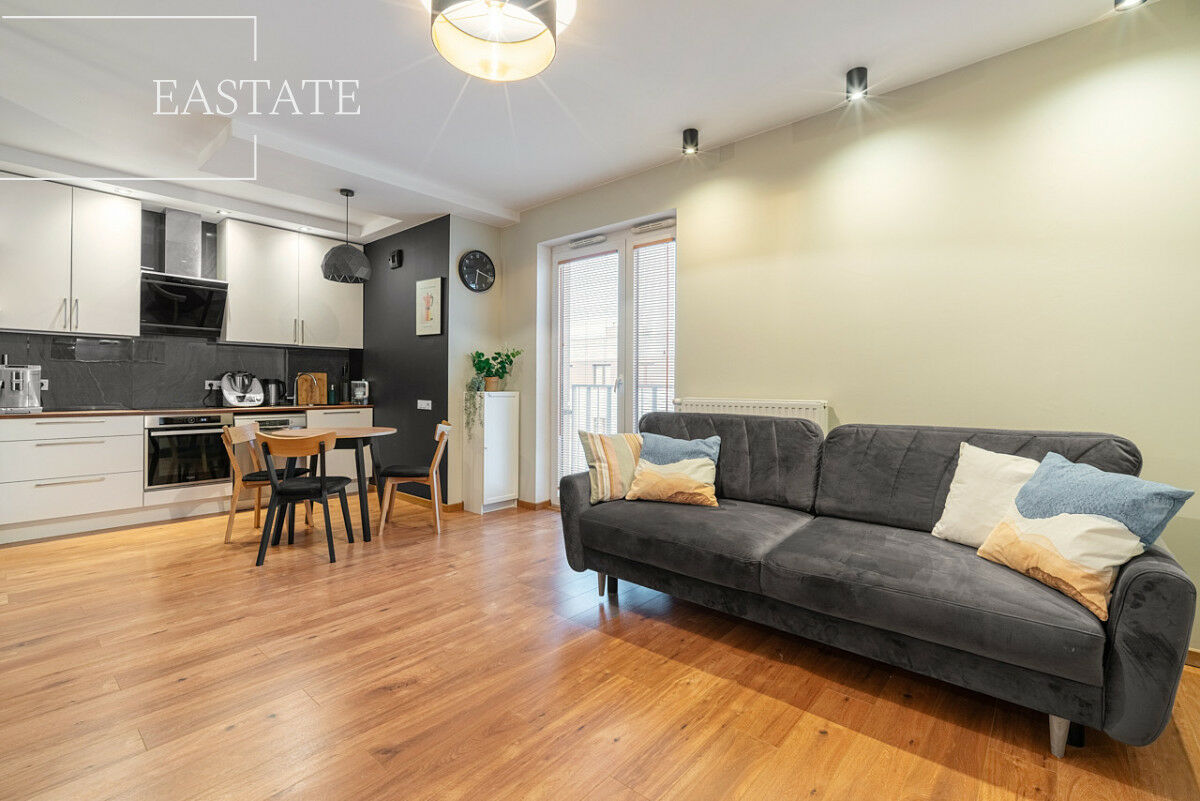 - przestronny salon z aneksem kuchennym oraz balkonem francuskim,