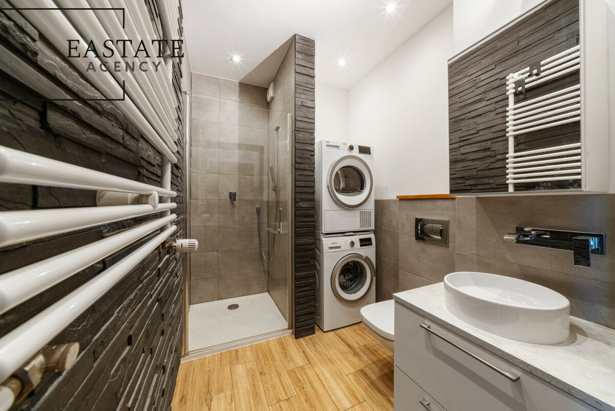 - łazienka z kabiną prysznicową.