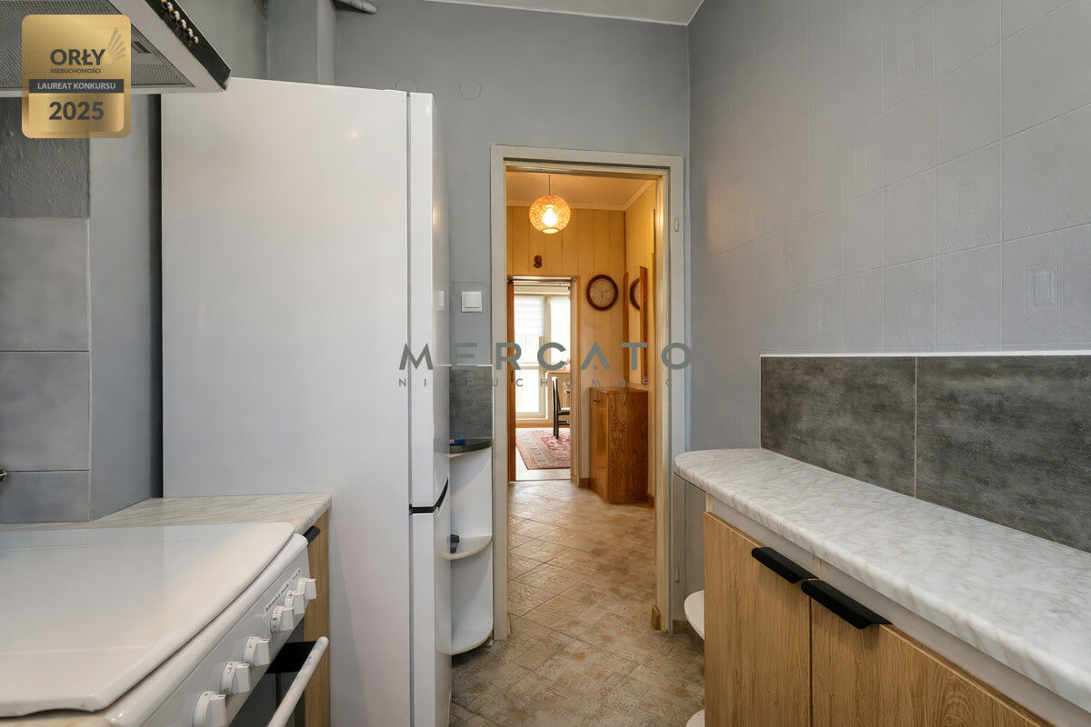 Układ: hol, trzy oddzielne, zamykane i nieprzechodnie pokoje (salon z wyjściem na loggię), oddzielna kuchnia, WC, łazienka,
