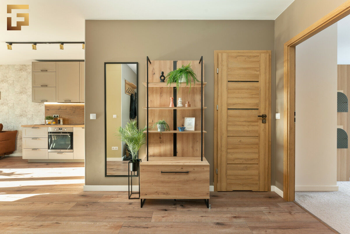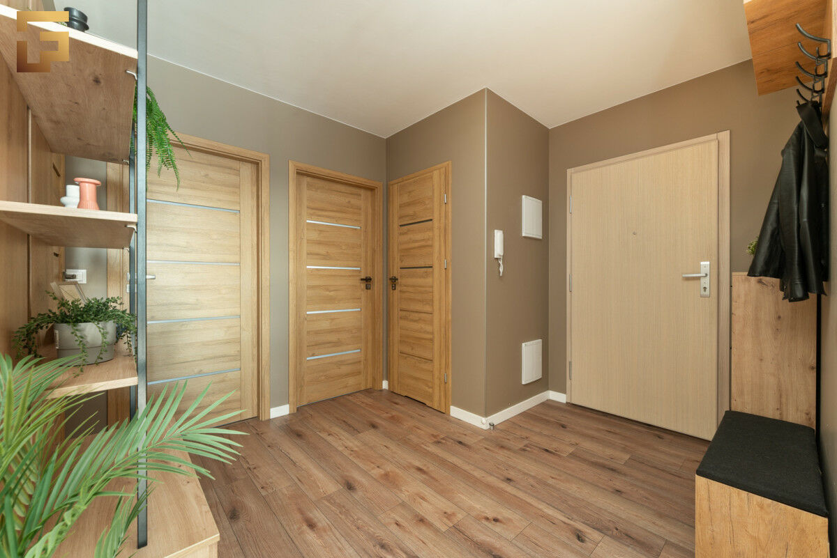 Wejście do mieszkania prowadzi przez komfortowy przedpokój. Bezpośrednio z przedpokoju mamy dostęp do garderoby, gdzie możemy przechowywać odzież wierzchnią oraz przedmioty gospodarcze.