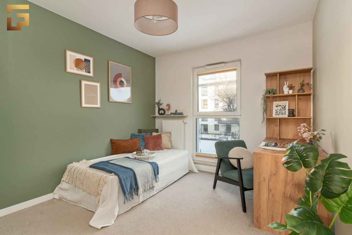 Drugi pokój to funkcjonalna, elastyczna przestrzeń, którą można łatwo dostosować do różnych potrzeb. Może pełnić rolę pokoju dziecięcego, gabinetu czy pokoju gościnnego. Neutralna aranżacja pozwala na łatwą zmianę funkcji pomieszczenia w zależności od aktualnych potrzeb domowników.