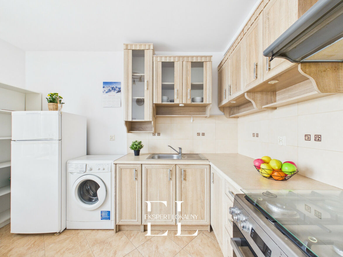 oddzielna, widna kuchnia z oknem oraz drugą rozkładaną kanapą